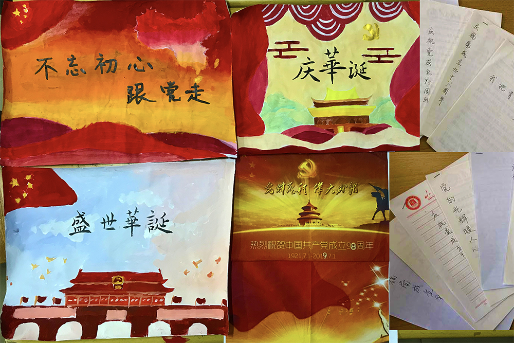 红色华诞,光辉历程。同学们还积极开展了征文、绘画、图片展等多种活动,生动形象的笔墨书画跃然纸上,将大家对党的敬重与爱戴抒发出来,字里行间体现着新时代青年人对党的无限敬爱之情。