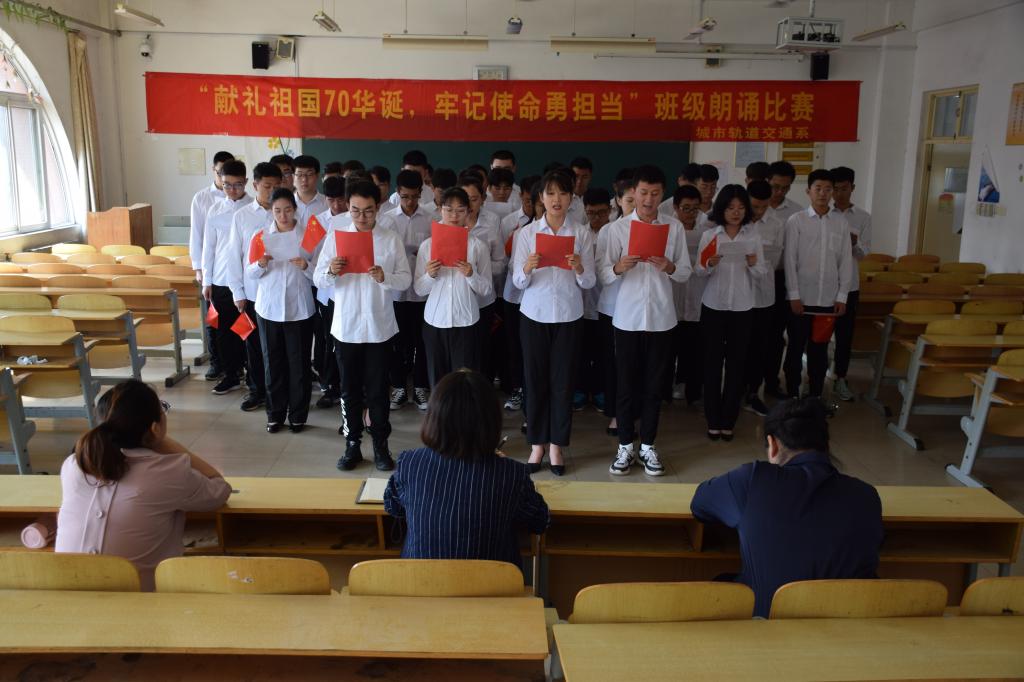 9月16日,城市轨道交通系举办了“献礼祖国70华诞,牢记使命勇担当”主题朗诵比赛。系学工办主任兼团总支书记张娜,辅导员武文玉、孙梅玲出席活动。