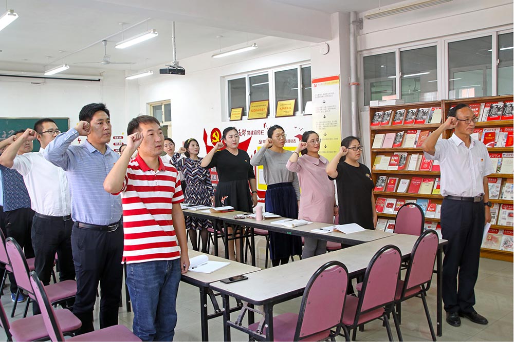 “我志愿加入中国共产党……”9月26日,城市轨道交通系党总支组织开展“不忘初心、重温入党誓词”主题党日活动,全体党员在党旗的见证下,重温了自己对党忠诚的铮铮誓言,表达了“不忘初心、牢记使命”的信念和决心。大家纷纷表示,将始终牢记入党誓词,牢记党和人民的重托,强化党建引领,真抓实干、勇于担当,切实在教育教学工作中发挥好党员的先锋模范作用,用实际行动为教育教学工作做出更大贡献。