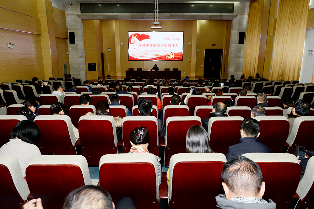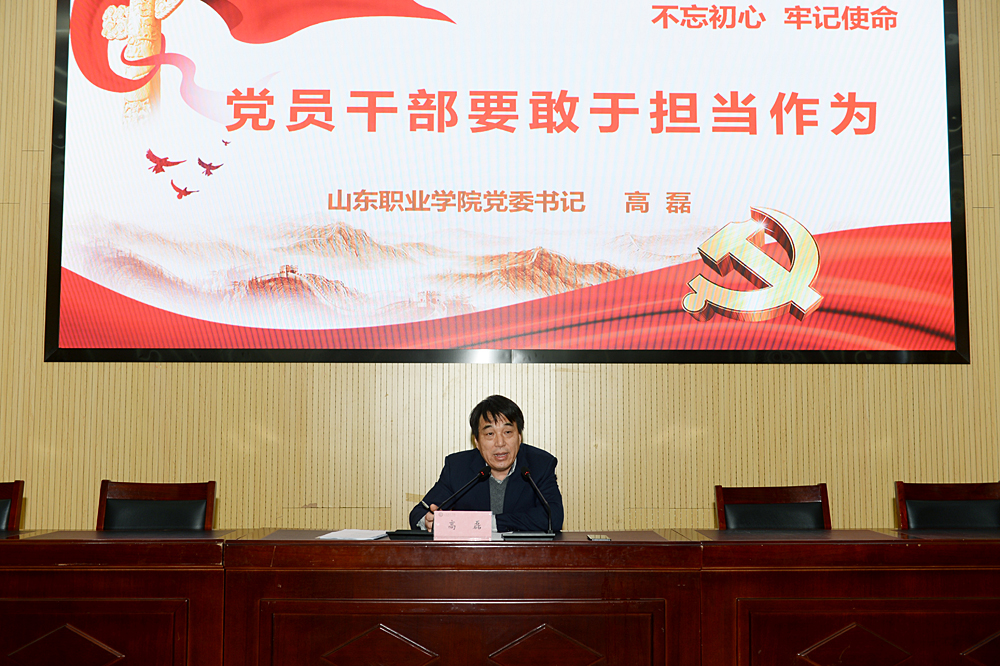 按照学院“不忘初心、牢记使命”主题教育安排,12月3日下午,学院党委书记高磊以《党员干部要敢于担当作为》为题讲授专题党课,学院正科级及以上干部、组织人事处和基础部(思政部)全体党员参加党课学习。