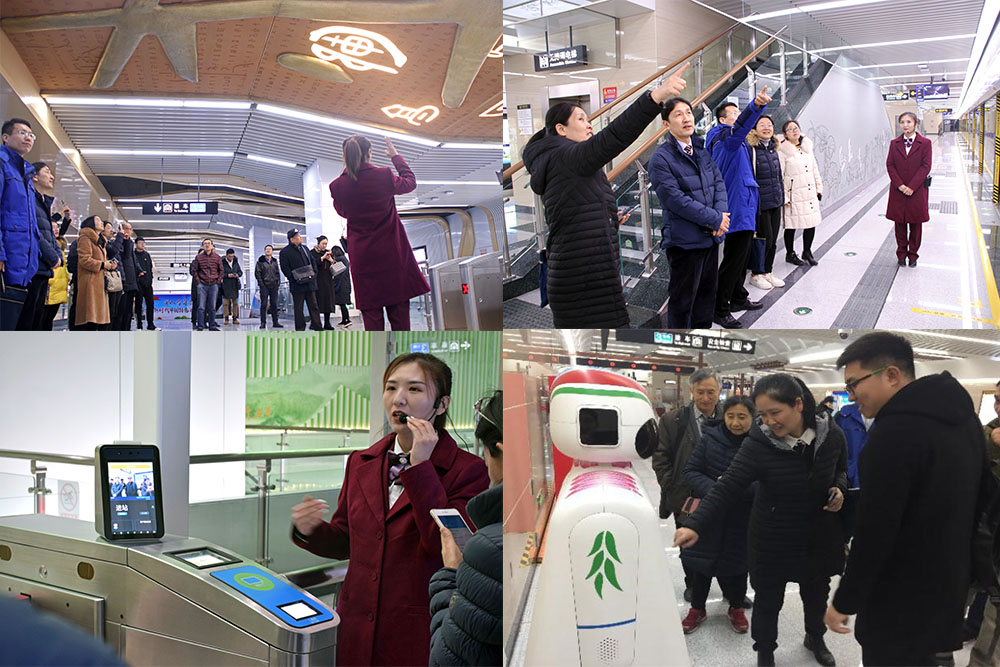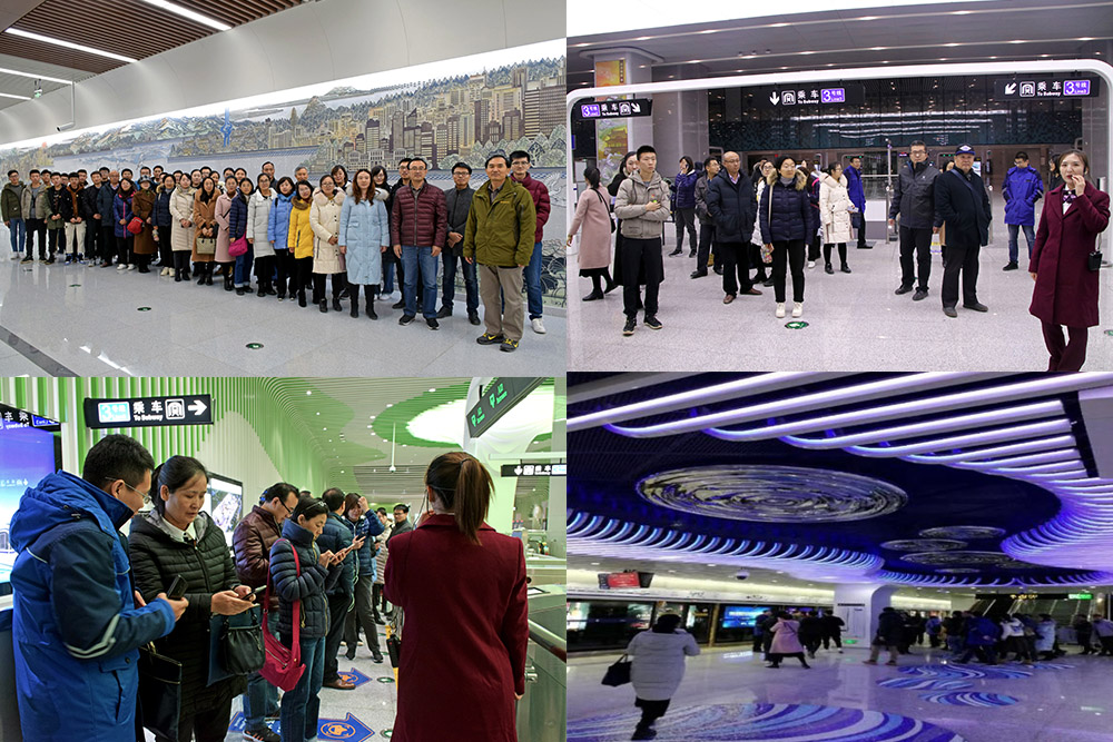 考察团一行首先从龙洞站至龙奥大厦进行了试乘体验。由于建设比其它城市晚,济南地铁更能博采众长,无论是地上还是地下部分,其一流的车站设施和整洁漂亮的车厢,车辆舒适平稳的运行,都给大家留下深刻印象。在龙洞站和龙奥大厦站,考察团参观了车站控制室、站内文化墙、屏蔽门、自动售检票设备,特别对人脸识别系统、二维码识别系统进行了学习了解,并就关心的问题详细咨询了现场的工程师。