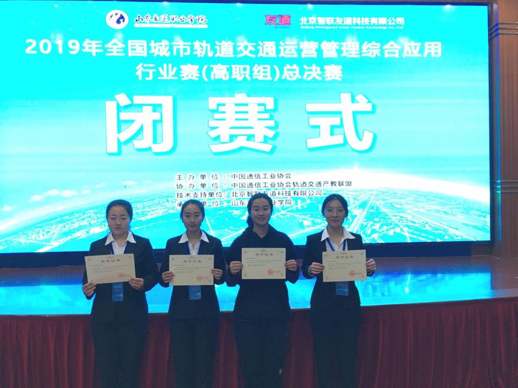 12月7日,全国城市轨道交通运营管理综合应用大赛(高职组)总决赛在潍坊举行,经预赛选拔,共有来自全国28所院校的代表队参加决赛。经过两天的激烈角逐,我院城市轨道交通运营管理专业参赛队获得决赛一等奖好成绩。