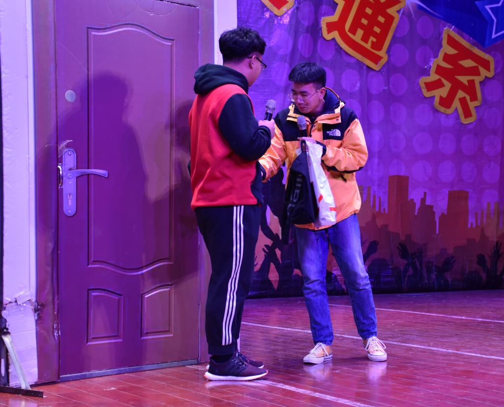 中间暖场环节进行的游戏《爱我你就帮帮我》台上台下互动热烈、爆笑不断;相声《大话宋词》妙语连珠,字字戳中同学们的笑点;歌舞表演《花儿与少年》充斥着风华正茂,挥斥方遒的满腔热血;小品表演《外卖来敲门》,以幽默风趣话语向我们诉说生活中的琐碎也能带来趣味;舞蹈《归去来兮》静谧委婉,楚楚动人,令观众沉迷其中;舞蹈《七》通过表现青年们态度为本次元旦晚会留下浓重的一抹色彩。