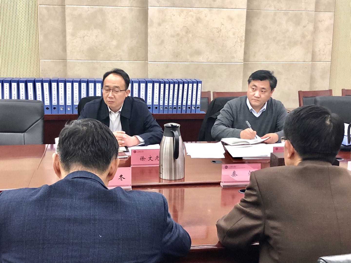 在座谈会上,院长秦河代表学院就主题教育开展情况做了汇报说明,其他参会人员从不同角度对学院主题教育取得的成效、重点任务落实情况发表个人见解。徐文元对我院主题教育开展情况给予了高度评价,同时针对我院主题教育中存在的问题提出了意见建议,希望我院不断巩固和提升主题教育成果,让主题教育成果落地生根,成为学院发展建设的强大推动力。