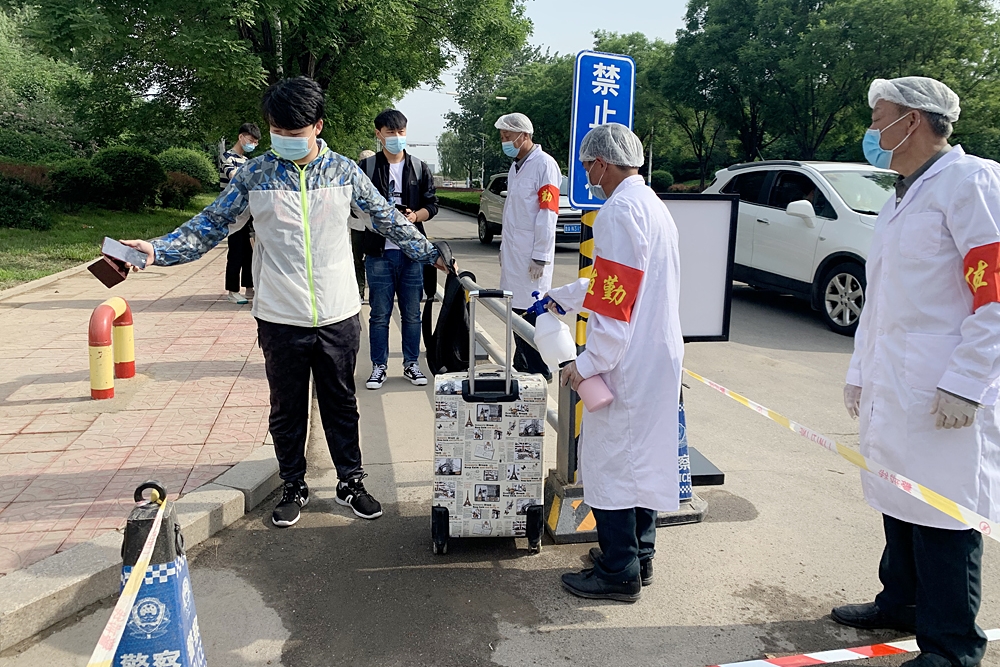 “欢迎回家!”5月16日,我院迎来春季学期首批返校76名学生。一大早,老师们已经在校门口等候。校门外专门设置了醒目的学生通道,防护防疫物品均准备到位。按照报到流程,同学们经过测量体温和消毒后,重返阔别已久的校园。
