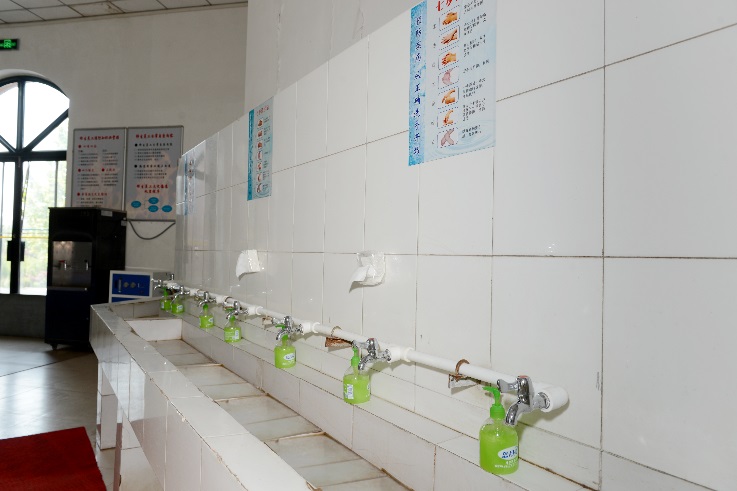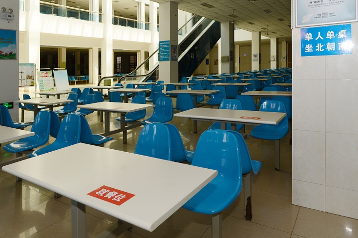在生活区,每栋公寓楼都安排有专人进行体温检测,体温正常才能进入。公寓楼内醒目位置张贴了防疫提示,提醒大家时刻做好防护。餐厅门口放置了就餐须知,安置了电子测温仪进行实时测温监控,餐厅内设置了就餐引导标识、张贴了防疫标识、设置了公共卫生手部消毒区。控制就餐人数,按系划分学生就餐地点、安排就餐时间,实行错时错峰、单人单桌用餐,避免聚集用餐。