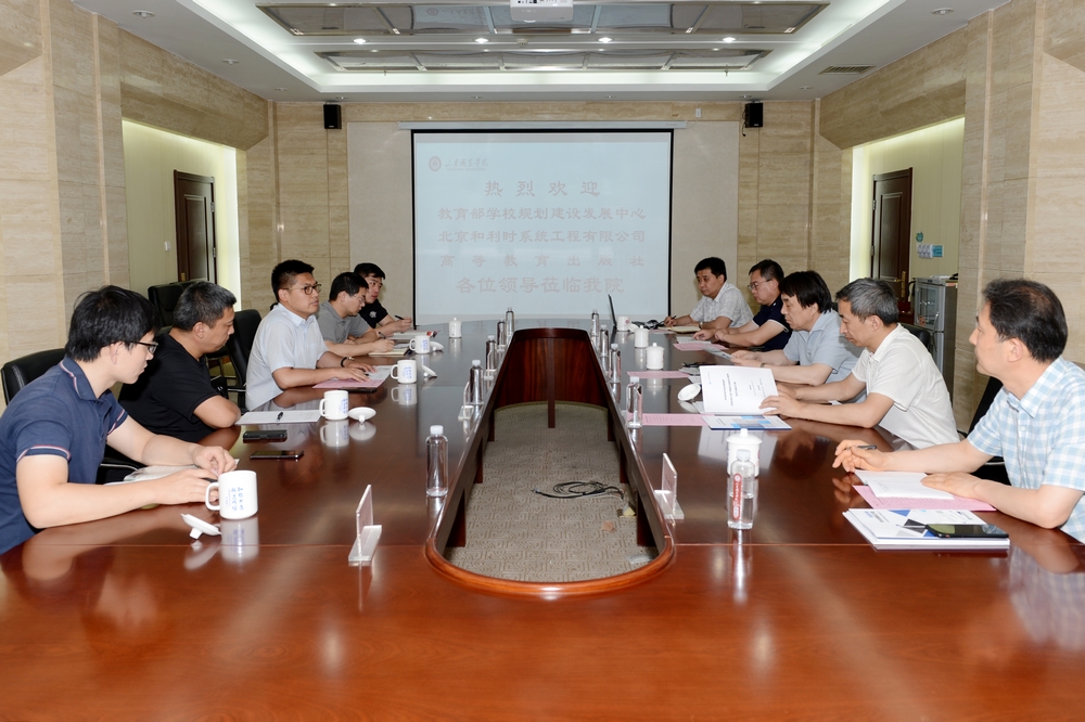 近日,教育部学校规划建设发展中心重大项目办公室主任尹崇峰、北京和利时系统工程有限公司职教实训事业部总经理朱百通、高等教育出版社山东省教学服务中心策划编辑唐维东等一行5人来校调研,学校党委书记高磊、副校长郭鹏出席会见,教务处处长于洪永、城市轨道学院院长王绍军等参加会见。
