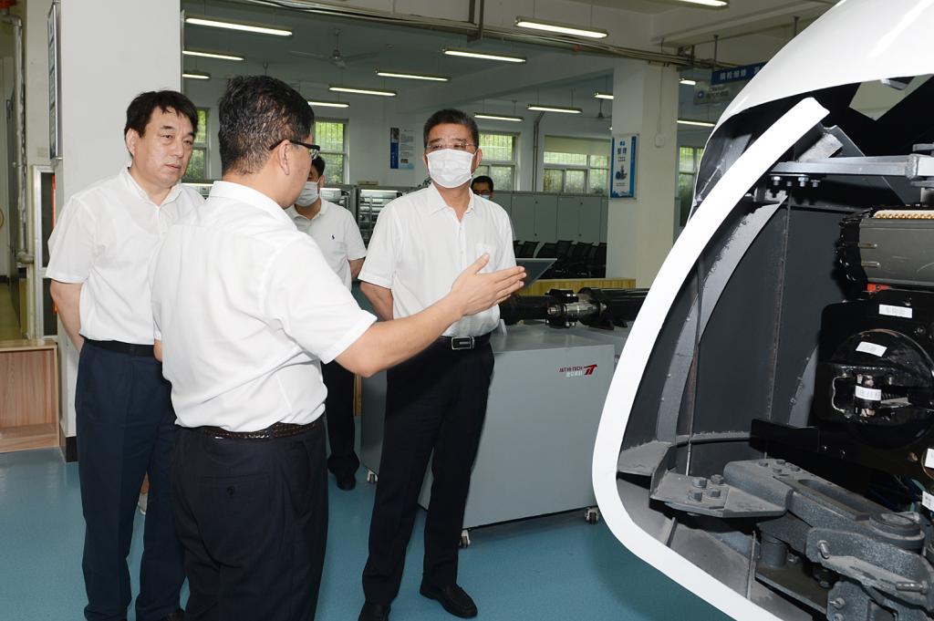 陈子季先后参观了学校“复兴号”动车组机械师实训室和轨道交通实验实训中心,每到一处都认真听取实验实训室建设情况、实训教学开展情况等介绍,详细询问人才培养、专业建设与行业产业发展对接情况等。