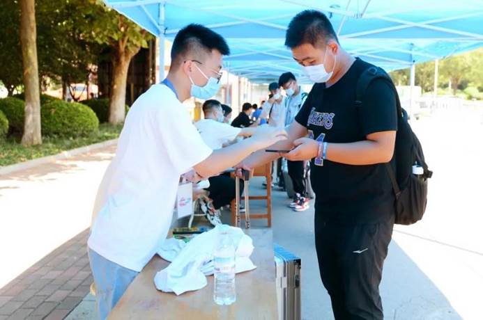 在北门,返校学生经过身份核验、出示电子健康通行码、体温测量等程序进入校园,到报到处报到,学生们个个精神饱满,校园里处处展现着生机与活力。