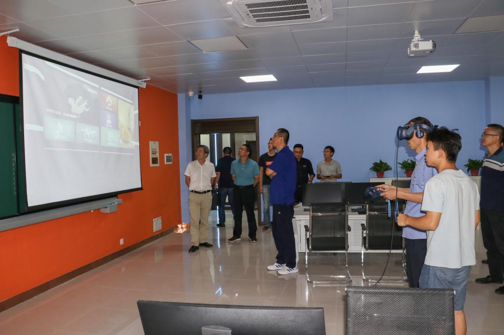 会后,高磊陪同济南电务段领导一行参观了新一代信息技术产业学院的VR实训室和铁道学院的动车检测实训室。