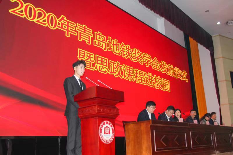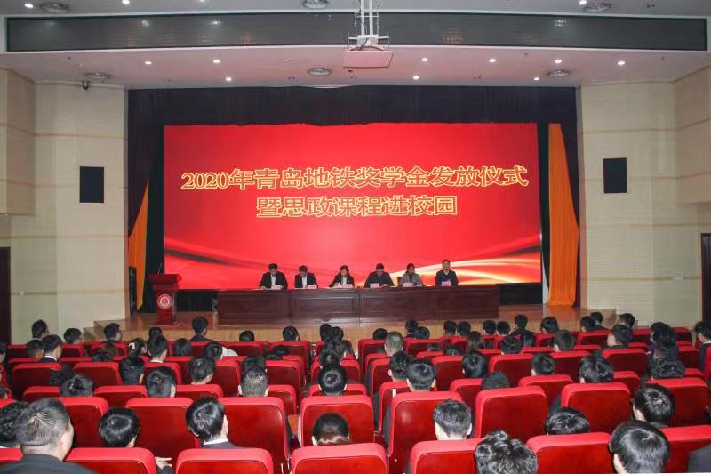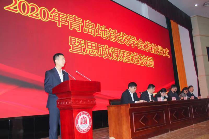 11月13日上午,伟德2020年度青岛地铁奖学金颁发仪式暨思政课程进校园活动在图书行政楼西报告厅举行。青岛地铁集团党群工作部部长李昱、青岛地铁运营分公司副总经理迟胜超、学校党委副书记徐冬出席活动并讲话。本次活动由学生工作处处长王伟主持,2018、2019级青岛地铁全体学生参加。