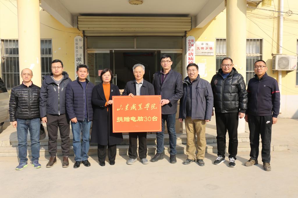 12月16日,学校党委副书记徐冬、省第十一次党代会代表李增足一行到郓城县唐庙镇,向省教育厅第一书记帮包村和加强农村基层党组织建设唐庙镇工作队联系村捐赠电脑44台,并到省党代会代表李增足联系的李楼村进行实地调研。唐庙镇党委书记韩福华,学校组织部部长王辉陪同调研。