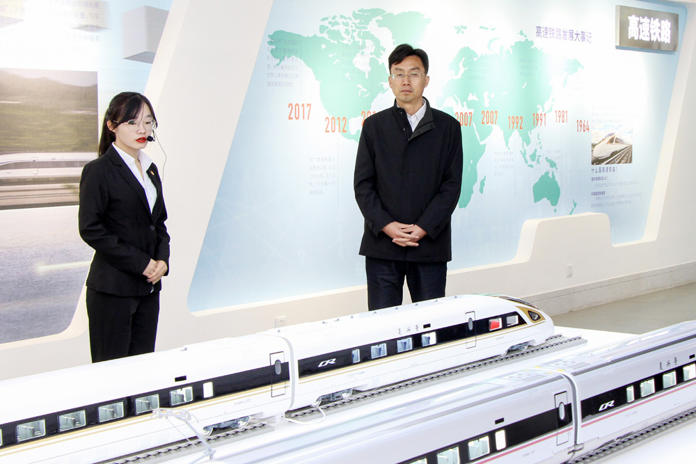 座谈会后,尚胜波一行参观了伟德校史馆、铁路技术使馆等青年志愿服务基地,广播站、电视台等青年新媒体矩阵及动车组实训室。