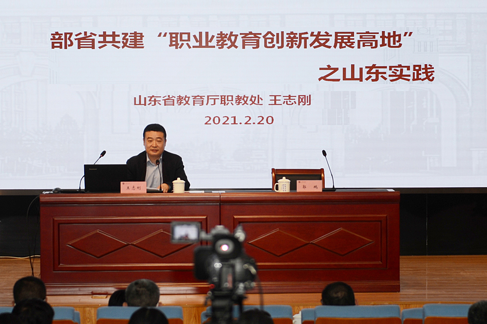 会议第一天,邀请了山东省教育厅职教处处长王志刚做了题为《省部共建“职业教育创新发展高地”之山东实践》的主题报告。王处长从省部共建创新发展高地建设的背景、政策制定的过程到山东省一年来创新发展提质培优行动的突出成绩,特别是中国式职业教育制度和模式建设的系列成果一一做了介绍,细致梳理了山东2012年以来出台的系列职业教育重要政策文件,并就2021年山东职业教育的七个转变、二十项重点工作任务进行了解读,对伟德制定“十四五”规划,做好“双高”和创新发展高地建设,做好提质培优行动计划,促进学校转设升本,提升学校教学质量具有极强的指导意义。