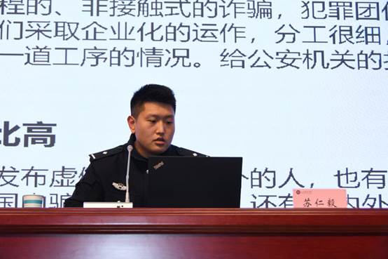 揭牌仪式结束后,高新分局网警大队与巨野河派出所民警组织开展了《反电信诈骗及网络安全》专题讲座,从法律专业角度为师生普及如何维护网络空间安全及个人信息保护知识,用鲜活的案例讲解什么是电信诈骗、电信诈骗的常见形式及如何识别防范电信诈骗。