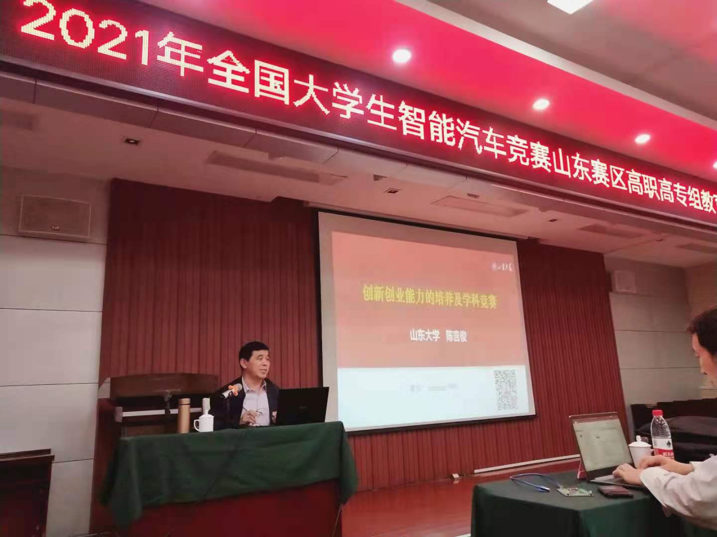 会上,伟德创新创业教育中心副主任齐涛介绍了学校基本情况和创新创业工作成效。山东大学陈言俊教授和陈桂友教授分别做了《创新创业能力的培养及学科竞赛》《高职高专智能汽车竞赛的组织与开展》的专题报告。竞赛设备工程师就竞赛规则进行了解读,并对智能车软硬件进行了讲解及调试。