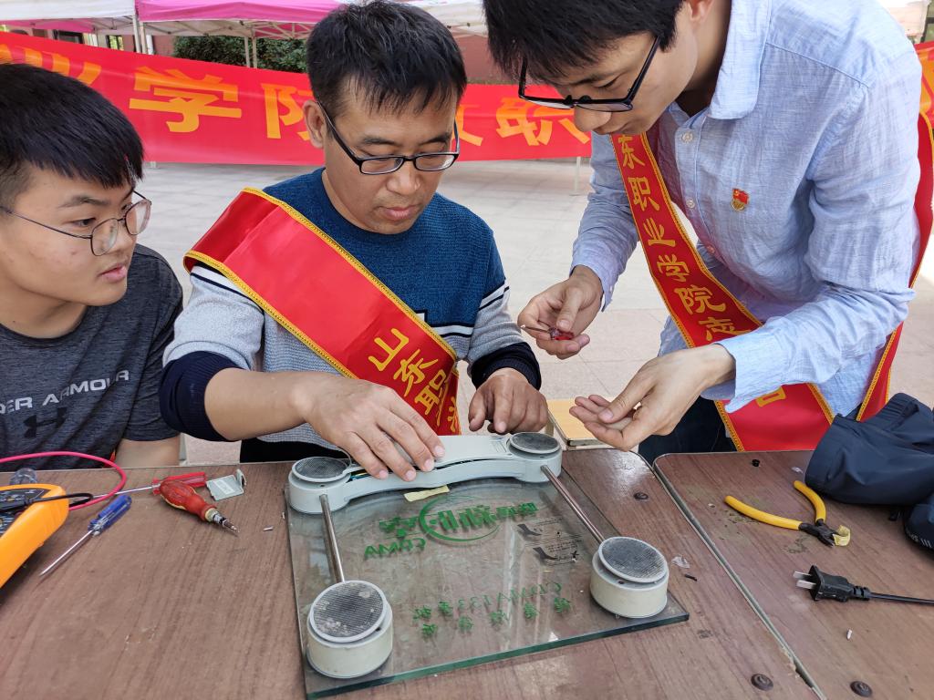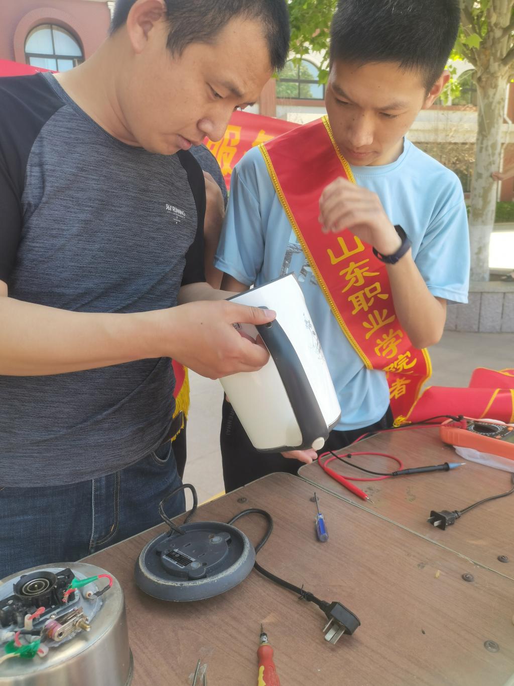 活动现场,志愿服务团队运用专业知识,为师生维修了热水壶、电子秤、打印机、电饭锅、电暖器等,得到了师生们的一致好评。同时,老师们现场教学,与同学们共同查找小家电损坏原因,耐心细致地向同学们传授其中所涉及的专业知识,同学们认真倾听、用心记录,受益匪浅。