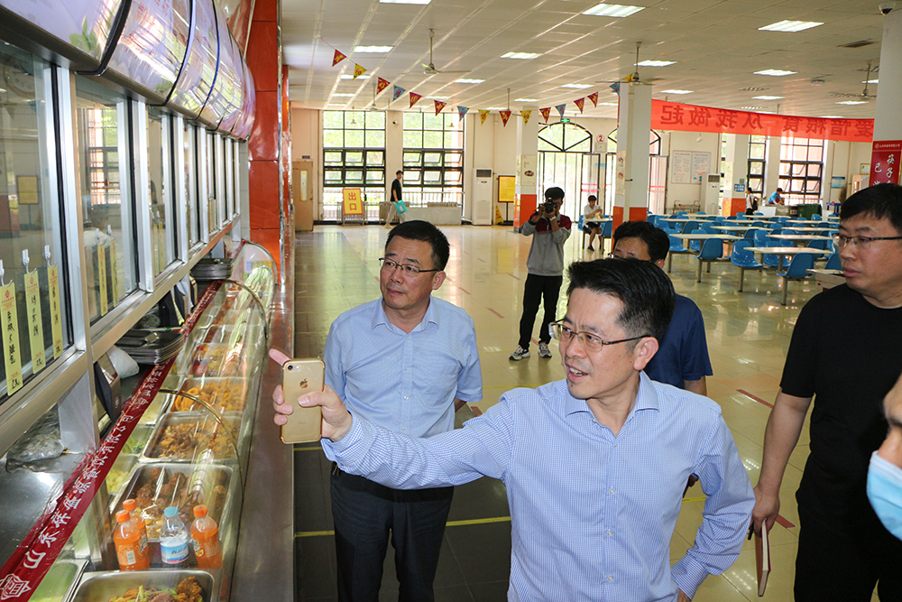在学生公寓,秦河与各书院辅导员进行深入交流,了解学生的在校情况,并对宿舍消防设施、器材以及用电设施设备进行实地查看。在学校餐厅,就疫情防控常态化期间食堂的操作间、主食间、就餐区、洗消间等场所的卫生安全工作进行了检查。实地查看了生物工程学院、城市轨道学院的实验实训中心,就实训场所的易爆危险物品管控和安全稳定工作与相关负责人员沟通交流。