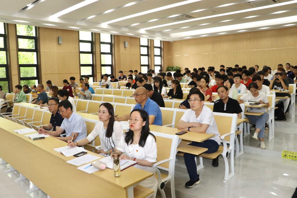 6月18日上午,副院长郭鹏在教学楼3109以《贯彻职教大会精神,做好职业教育体系建设》为题讲授专题党课。有关职能处室、二级学院、书院师生代表近200人参加。
