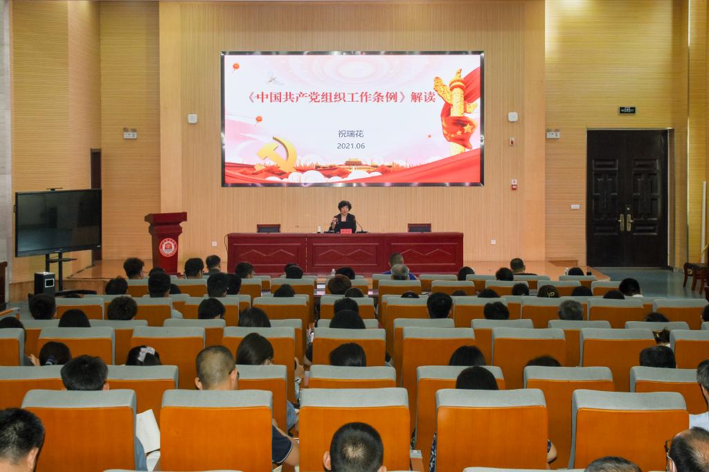 6月22日下午,副院长祝瑞花在图书行政楼东报告厅以《<中国共产党组织工作条例>解读》为题讲授专题党课。有关职能处室、二级学院、书院师生代表200余人参加。