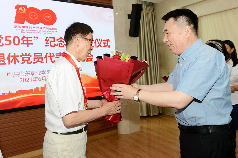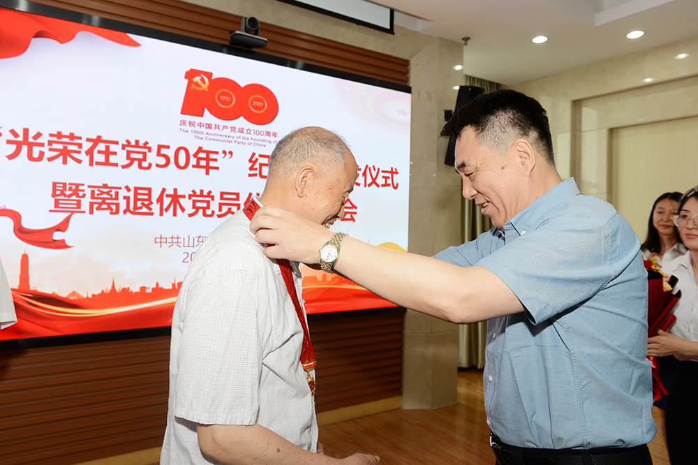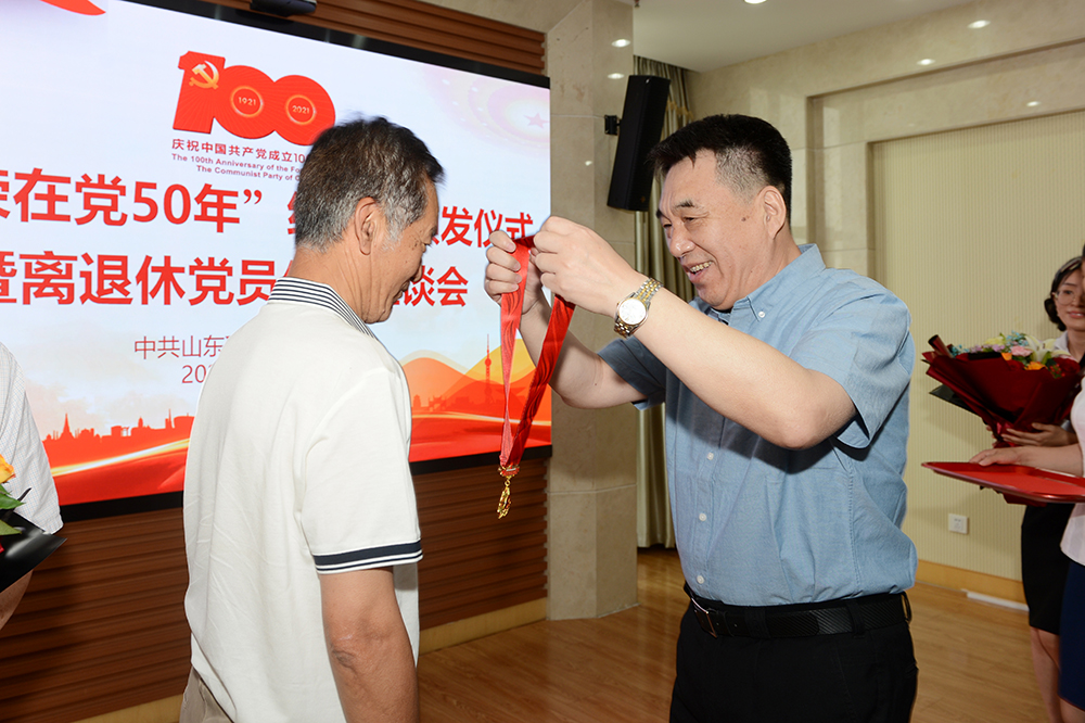 颁发“光荣在党50年”纪念章工作是中国共产党成立100周年庆祝活动的重要组成部分。今年是首次颁发,伟德共有39位老党员荣获纪念章。许金亮、孔凡柱、冯国祥三位老党员代表参加了本次颁发仪式。党委书记高磊向老党员代表颁发纪念章。