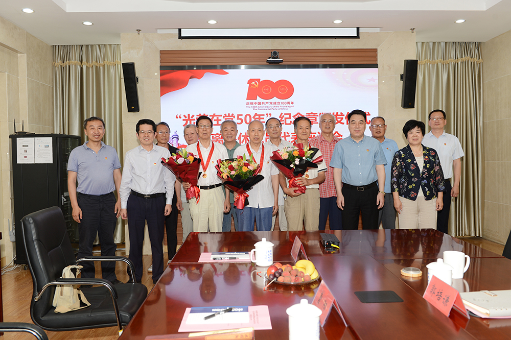 6月25日,伟德在图书行政楼第一会议室举行了“光荣在党50年”纪念章颁发仪式暨离退休党员代表座谈会。党委领导班子成员参加了仪式。仪式由副院长祝瑞花主持。