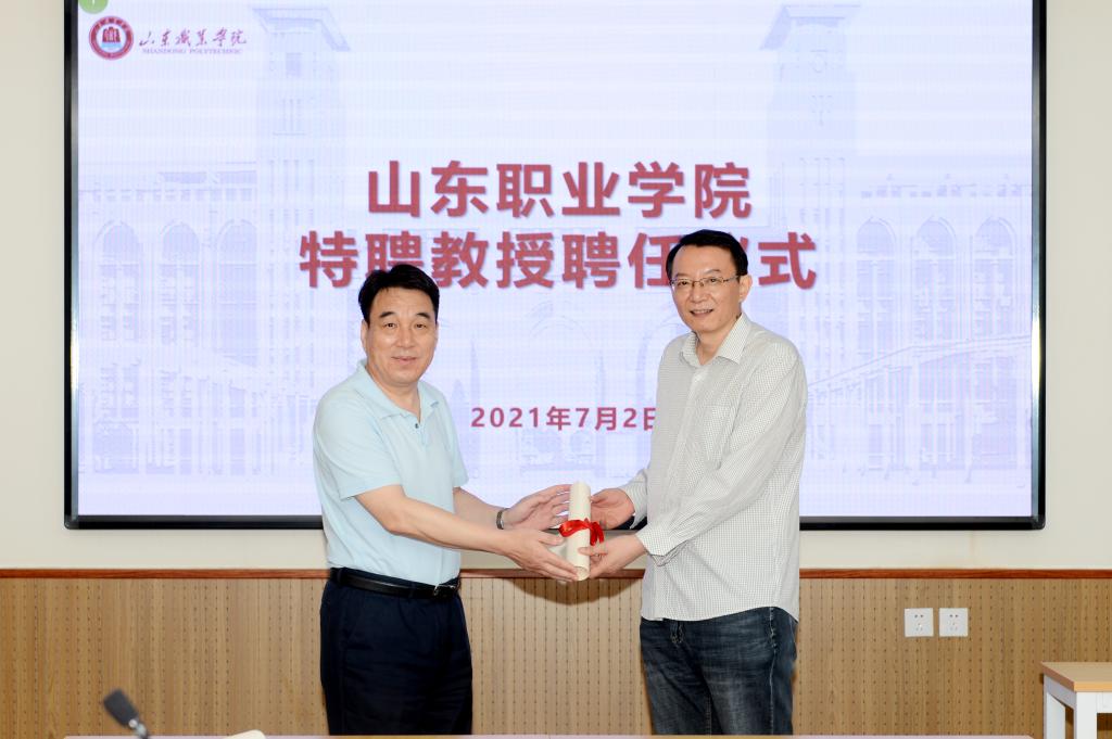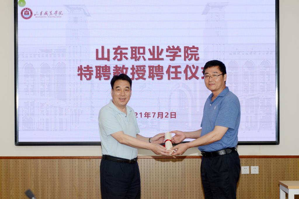 汇报结束后,高磊向董育斌、王勇颁发了特聘教授聘书。