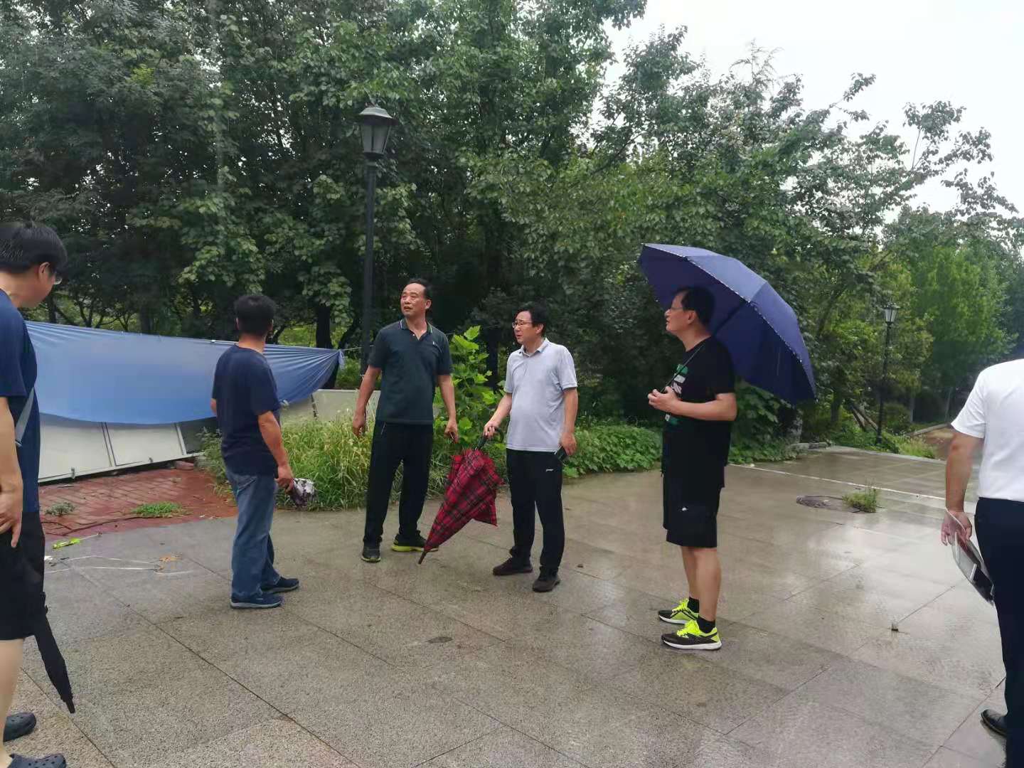 为做好台风“烟花”应对防范工作,落实安全责任,进行隐患排查。7月28日,副院长郭培谦带领总务处、安全保卫处、物业公司相关人员,对学校防汛防台风工作进行检查。