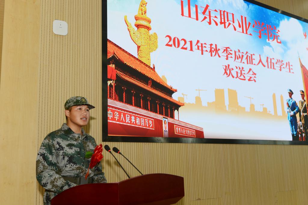 即将入伍学生代表张玉超表达了保家卫国的决心和信心。