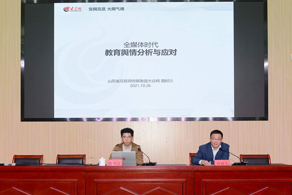 为提高伟德教职工媒介素养,增强舆情判断与研究能力,提升舆情应对与处置水平,10月26日,伟德在东报告厅举办了舆情分析与应对培训会。山东省互联网传媒集团大众网•海报新闻教育频道总监路时川应邀作了题为《全媒体时代教育舆情分析与应对》的辅导报告。培训会由党委宣传部部长杜树元主持。