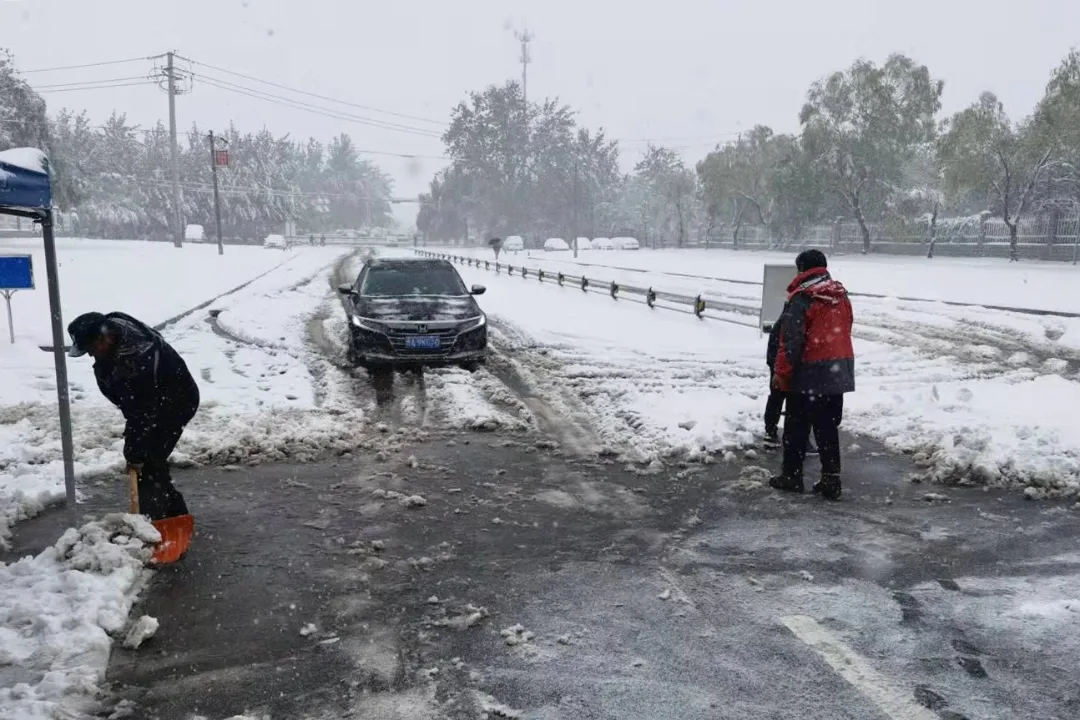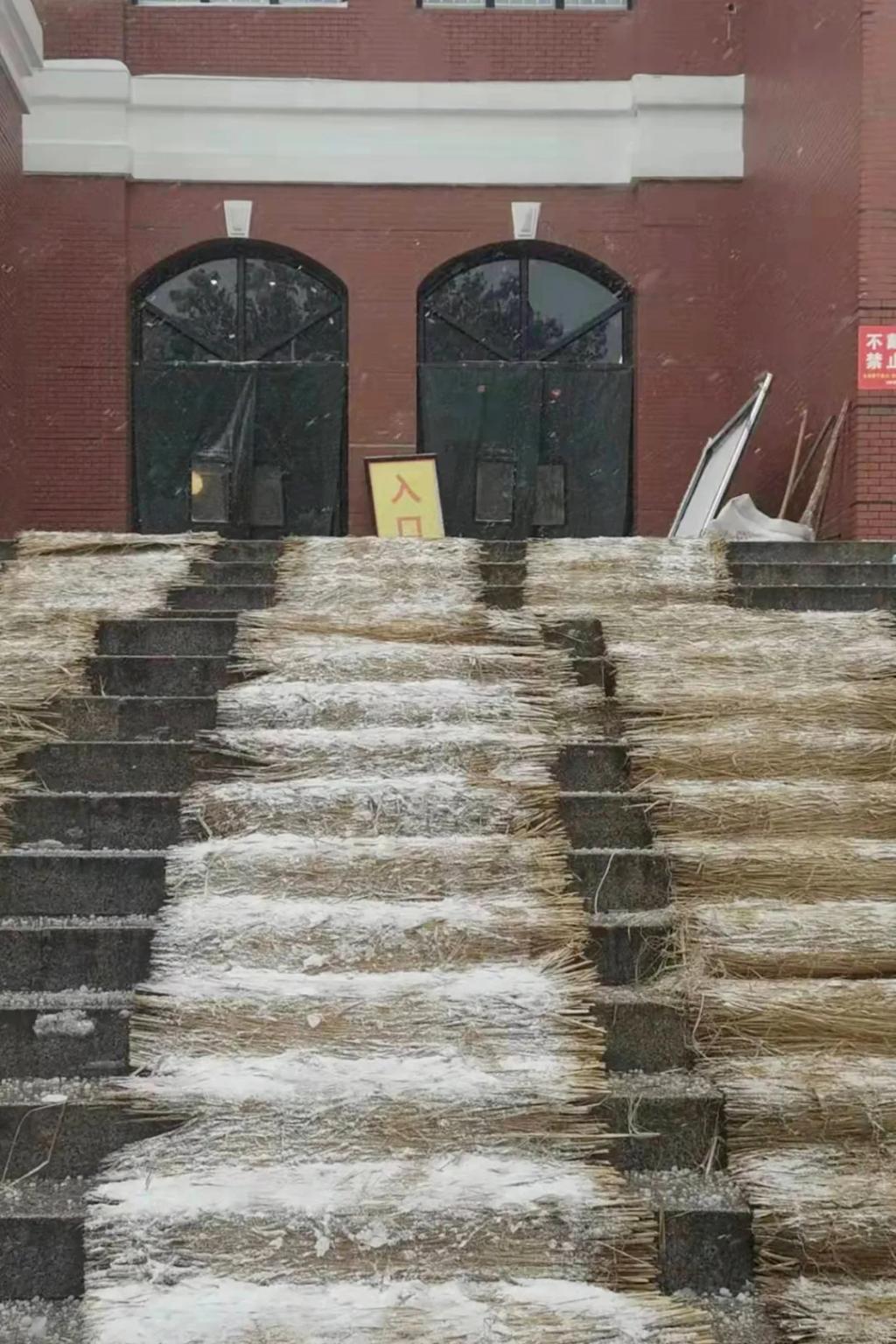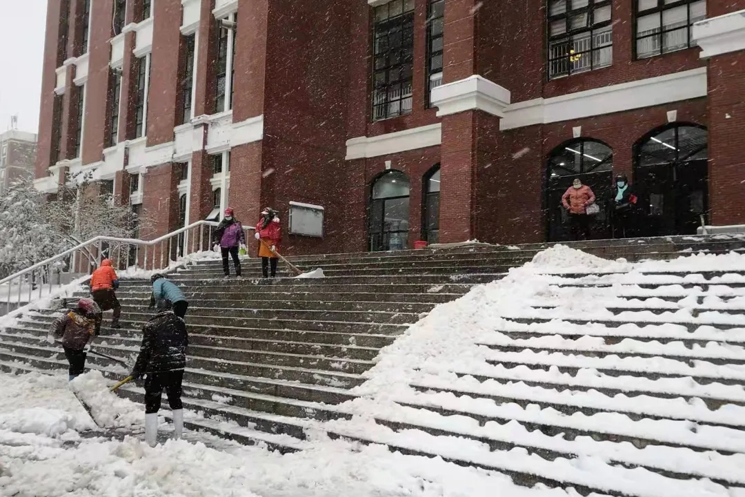 为确保师生的出行安全,大雪尚未停止,伟德物业、安保、餐厅人员,已经开始清扫学校各主要马路,打开主要人行通道,在教学楼入口处放置除滑地毯,在台阶上放置草笘子防滑。谢谢大家,你们辛苦了!