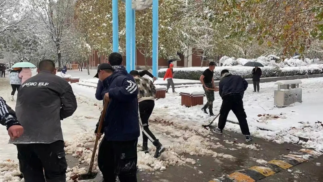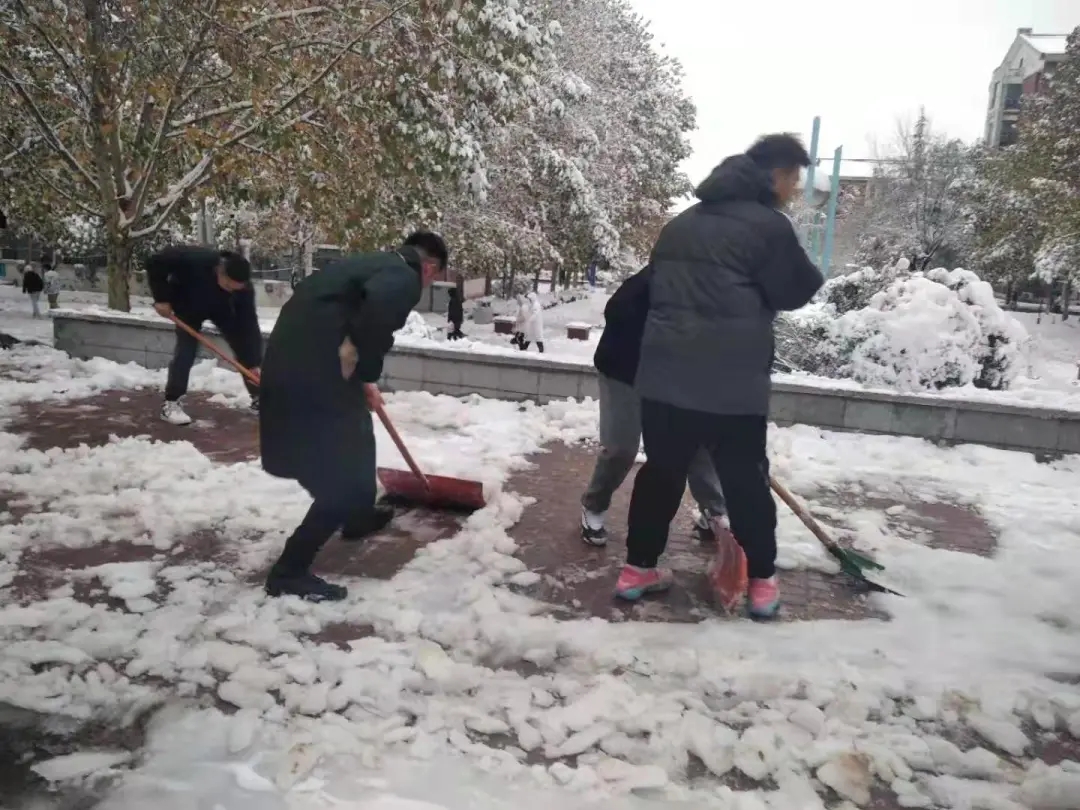 在这一片银装素裹的冰雪王国背后,始终有一群人默默守护我们的安全与温暖。雪后的校园,不觉得冷,四处充满暖意。