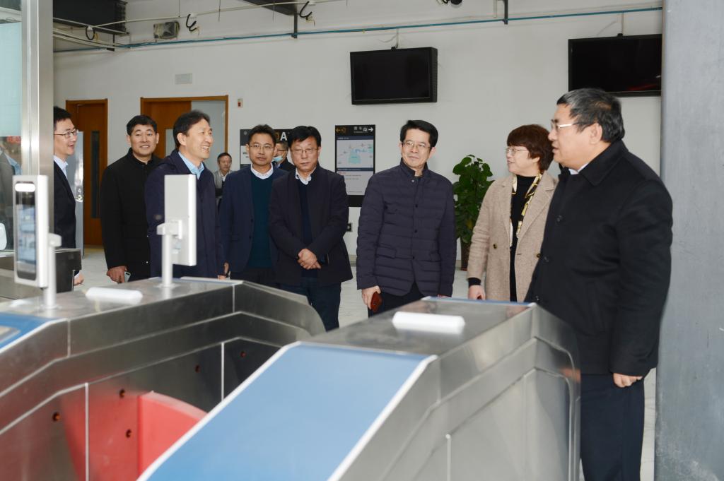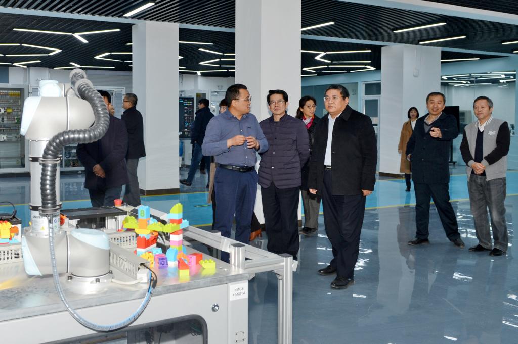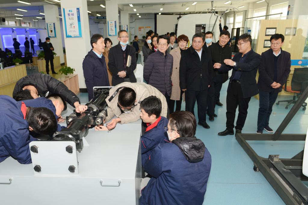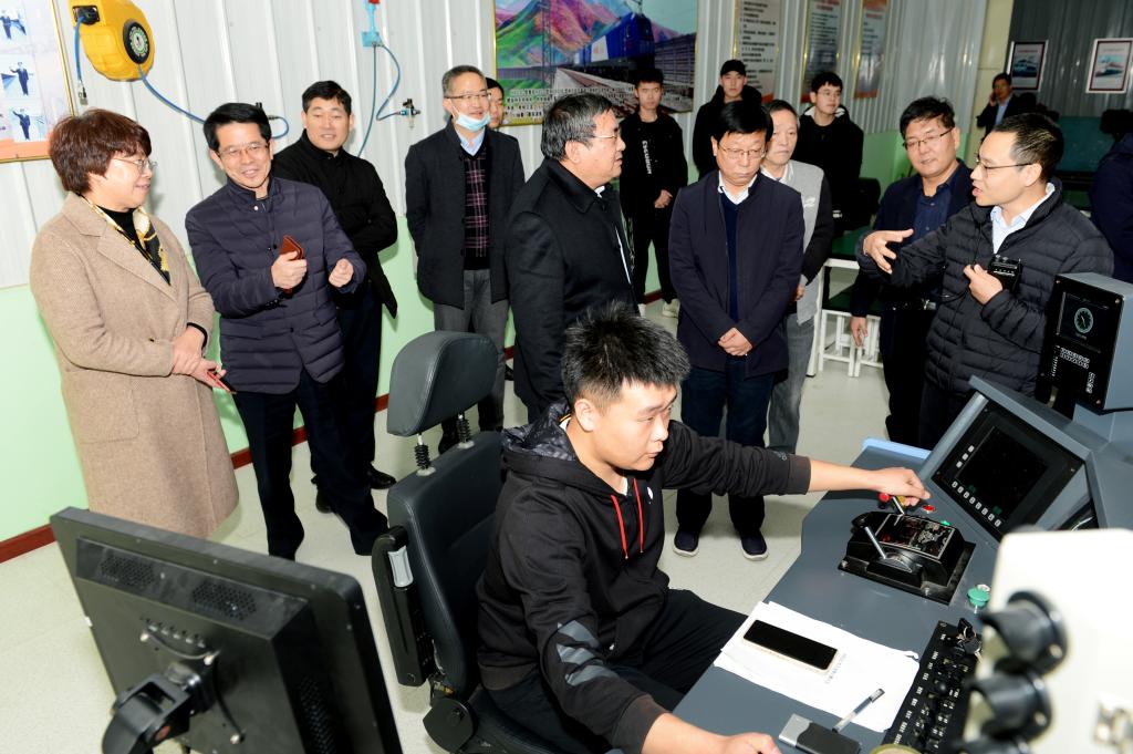 汇报会后,专家组一行实地考察了动车组机械师实训室、铁道机车实训中心、轨道交通实验实训中心,新一代信息技术产业学院铁道信号三维仿真虚拟实训室、网络安全实训室、大数据实训室,智能制造学院智能制造生产线、虚拟仿真与虚拟调试实训室等学校实验实训场所。