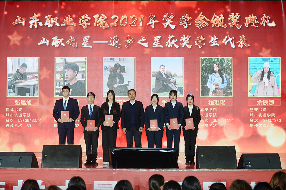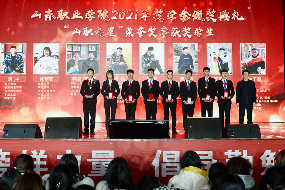 星光红毯仪式后,表彰颁奖仪式正式开始。学校对16名“国家奖学金”获得者、18名“省政府奖学金”获得者、408名“国家励志奖学金”获得者、46名“省政府励志奖学金”获得者、3030名“综合测评奖学金”获得者进行了表彰。授予541名同学“山职之星”荣誉称号,授予63间宿舍“2020年全奖学金宿舍”荣誉称号,特别授予9名同学“山职之星”荣誉奖章。与会领导和嘉宾向获奖同学颁发荣誉证书。