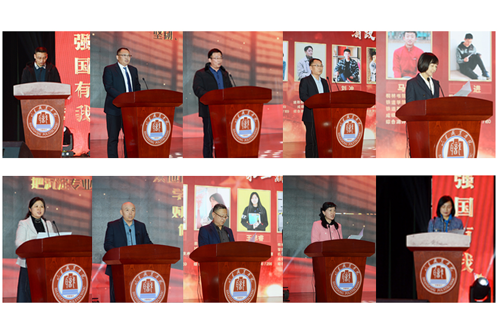 党委副书记郭培谦代表学校向受表彰的同学表示祝贺,向关心和支持学校发展的省厅领导、合作企业及家长朋友表示感谢,向辛勤耕耘的老师们致以崇高的敬意。他寄语全校学子心中要有理想,立志肩负起中华民族伟大复兴的时代重任;肩上要有担当,刚健有为、自强不息,在奉献社会中实现自我价值;手上要有本领,不断提升专业知识储备和技能水平。