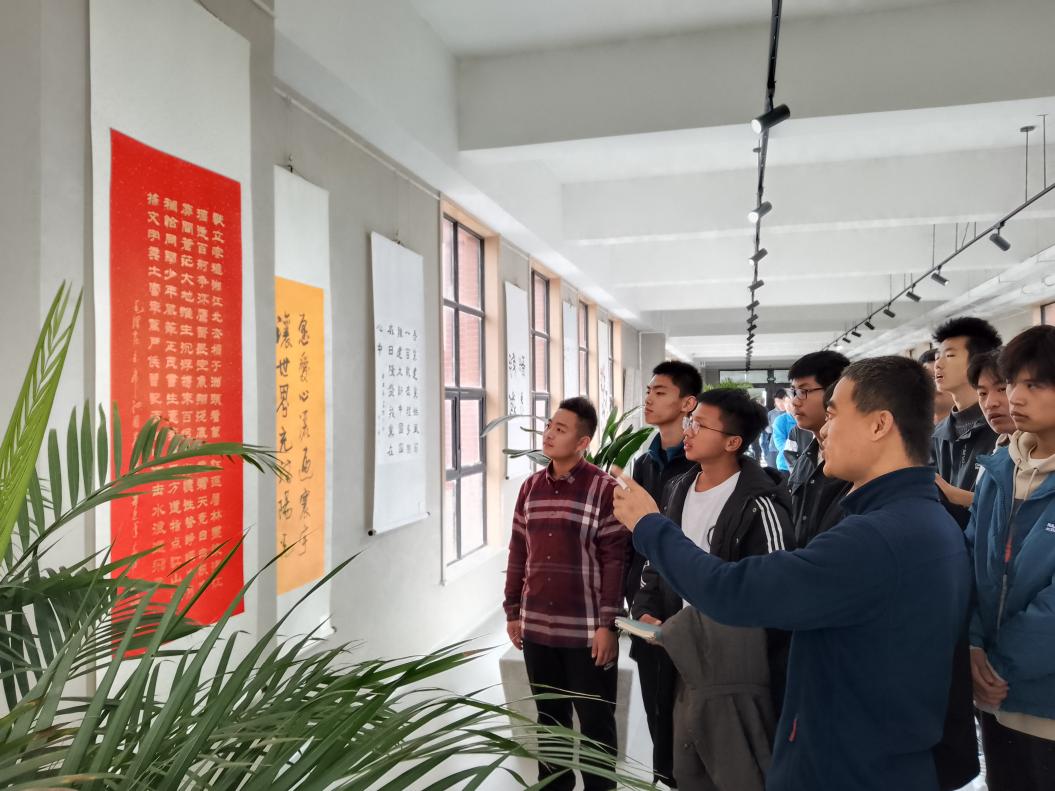 本次展览以坚定文化自信,熏陶人文素养,提升办学品味,涵养校园气质为宗旨。活动分为自由观览和集体参观,期间,有计划分批次组织了1500余名在校师生进行了集体参观,校广播站的五名同学组成讲解团,围绕作者简介、创作背景、构图着色等为师生们进行了讲解。