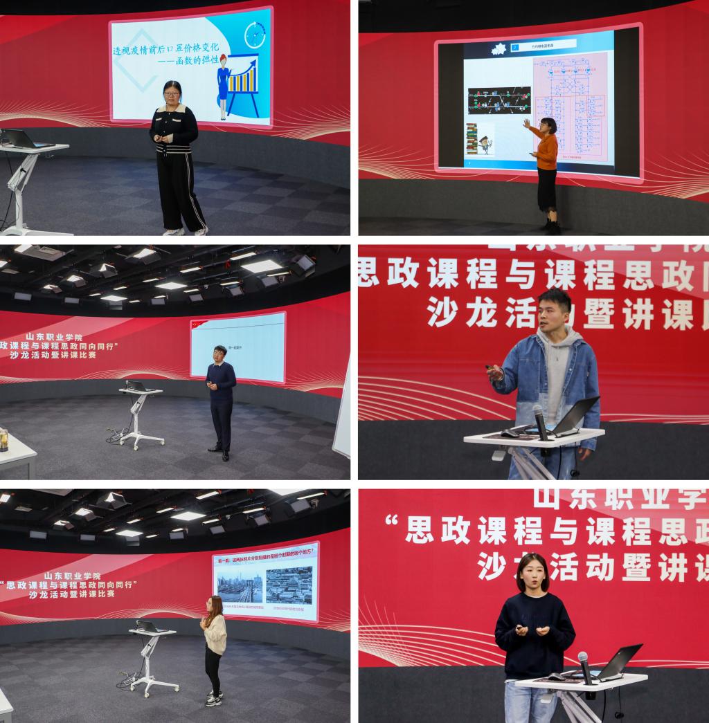来自各二级院部的30位优秀青年教师分别做了精彩的展示。专业课教师结合所讲课程的课程特点、思维方法和价值理念,深入挖掘课程思政元素,有机融入课程教学,整个比赛过程精彩纷呈。思政课教师在分享过程中就如何引导学生走出学校、走向社会,如何形成理论主课堂、实践大课堂、网络新课堂一体贯通,构建无缝对接的立体思政育人网络进行了探讨。
