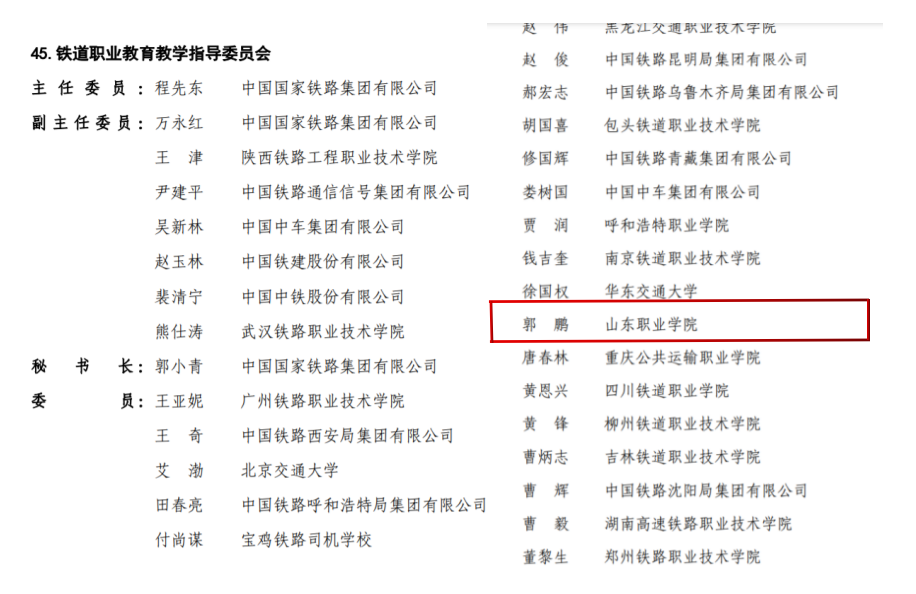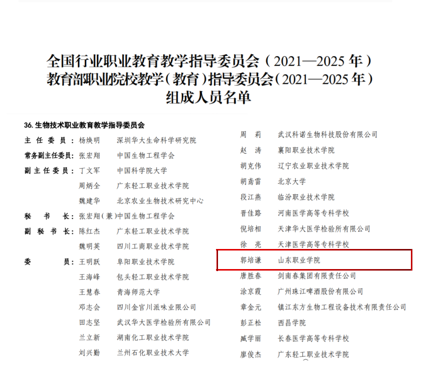 近日,教育部公布了全国行业职业教育教学指导委员会(2021—2025年)和教育部职业院校教学(教育)指导委员会(2021—2025年)组成人员,伟德党委副书记郭培谦入选生物技术职业教育教学指导委员会委员,副院长郭鹏入选铁道职业教育教学指导委员会委员。