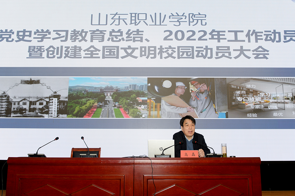 高磊强调,2022年要重点做好5个方面22项工作:一是着力创建党建品牌。建立党史学习教育常态化长效化制度机制;深入推进“支部在行动+”和“党徽闪光行动”品牌创建工作;充分发挥党校平台作用,扎实开展干部教育培训;全面从严治党,一体化推进自我监督、组织监督、审计监督;深化“四点”对话机制,巩固“我为群众办实事”实践活动成果。二是全力推进内涵提升。全面推进“十百千品牌思政”工程;全力改进体育美育劳动教育;继续优化专业布局;系统谋划“十四五”教材建设、课程建设、教改教研项目;实施教师教学能力达标工程;进一步深化实施“岗-课-赛-证”融通人才培养模式改革、完全学分制教学管理模式改革、课程教学水平评价改革、完全书院制学生管理模式改革、人事分配制度改革等五项重点改革;全面贯彻落实教育部等八部门联合印发的《职业学校学生实习管理规定》;继续大力引进博士等高层次人才、高技能人才。三是持续推进校园更新。启动校园总体规划修编;进一步拓展办学空间;完成剩余教学楼和学生公寓的环境改造;整体改造实验实训室。四是全力创建全国文明校园。以打造人文山职、平安山职、智慧山职、绿色山职为总抓手,打造幸福山职,全力创建全国文明校园。五是确保学校安全稳定运行。重点做好意识形态安全、疫情防控安全、安全生产、心理健康等工作。