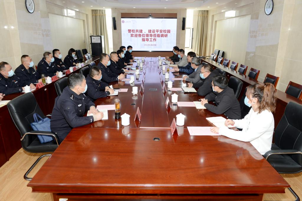 高磊指出,安全是学校发展的基石,近年来,在公安部门的大力支持下,学校平安校园建设卓有成效。校园警务室建设离不开驻地公安部门的支持,希望公安部门一如既往关心关注支持学校的建设与发展,学校也将为警务室创设更好的条件,下一步,学校党委在研究安全稳定相关工作时要邀请驻地公安列席参加相关议题研究,切实做好学校与驻地公安部门的共建工作。
