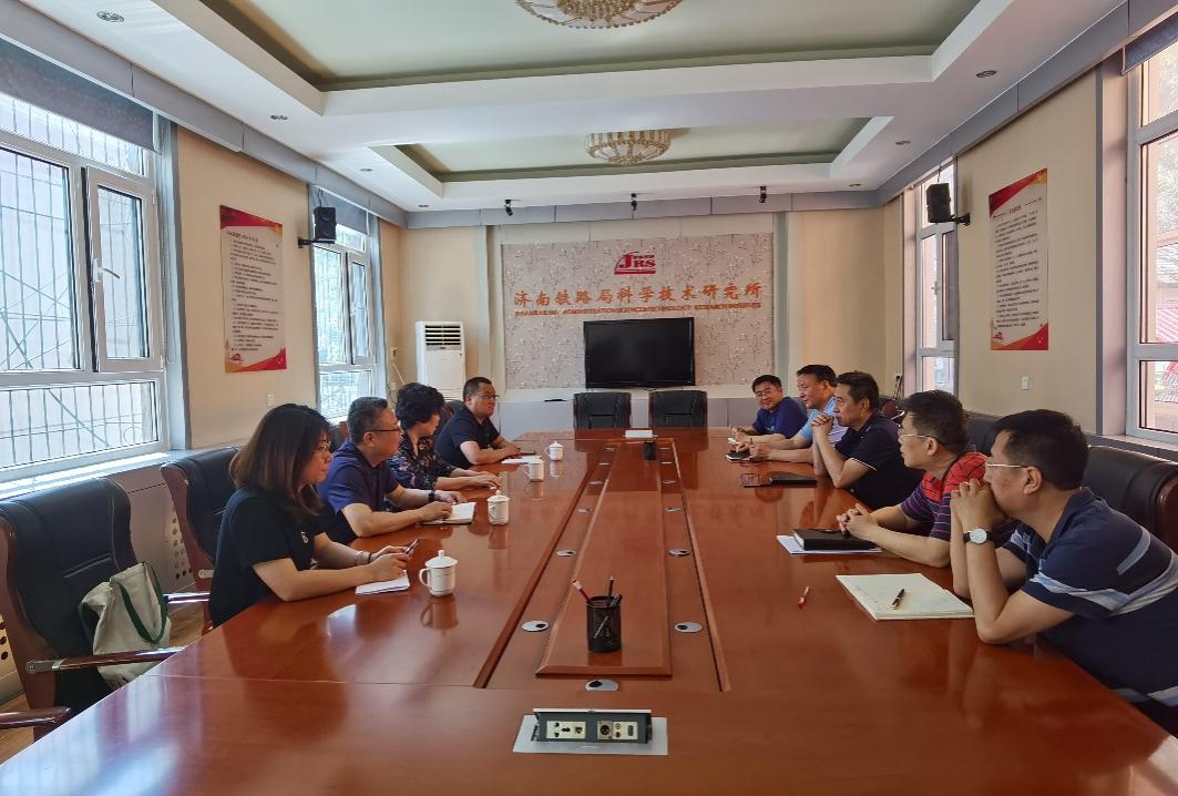 6月7日上午,副院长祝瑞花率队到中国铁路济南局集团有限公司科学技术研究所(简称济南局科研所)交流院所合作事宜。济南局科研所所长孟凡刚接待祝瑞花一行。