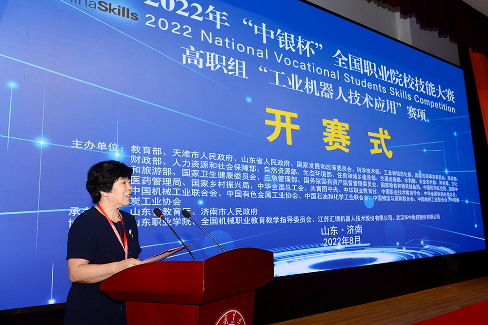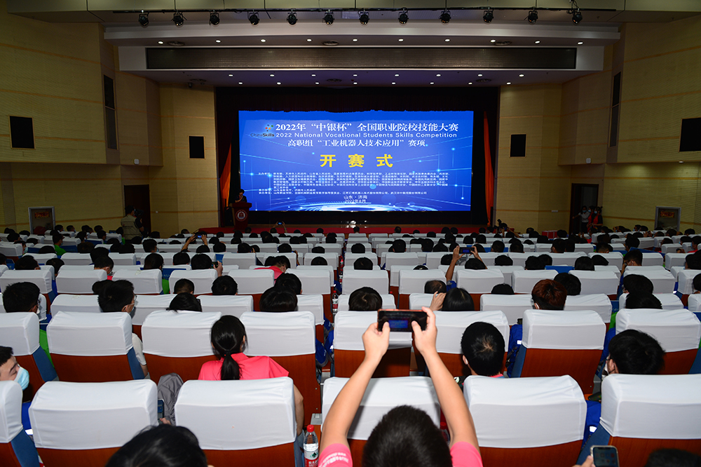 8月22日,2022年“中银杯”全国职业院校技能大赛高职组“工业机器人技术应用”赛项开赛式在伟德图书行政楼西报告厅举行。山东省教育厅职业教育处一级调研员孟令君,伟德betvlctor1949源于英国党委书记高磊,赛项执委会副主任、山东交通职业学院党委副书记、院长王心,大赛合作单位中国银行股份有限公司济南分行党委委员、副行长郝学彬,赛项专家组长范进桢,裁判长熊越东,监督仲裁组长蒋晓刚,赛项执委会委员、江苏汇博机器人技术股份有限公司副总裁崔晓辉,赛项执委会委员、武汉华中数控股份有限公司教育事业部副总经理宁柯出席开赛式。开赛式由学校副院长祝瑞花主持。