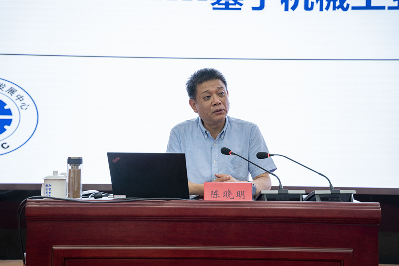 开班仪式结束后,机械工业教育发展中心主任陈晓明以《制造业高质量发展下的职业教育高水平专业建设——基于机械工业数字化转型与产教科融合的思考》为题做首场专题报告。陈主任从装备制造业高质量发展与人才需求、职业教育高质量发展与产科教融合、适应企业数字化转型的专业建设策略、共铸产教融合创造力的行业服务行动等四个方面深入浅出的分析了制造业产业发展的现状,以及职业教育高质量发展的路径,并对伟德专业及专业群的建设情况,提出了宝贵的意见和建议。整场报告内容丰富、理论联系实际密切,赢得了参培教师的阵阵掌声。
