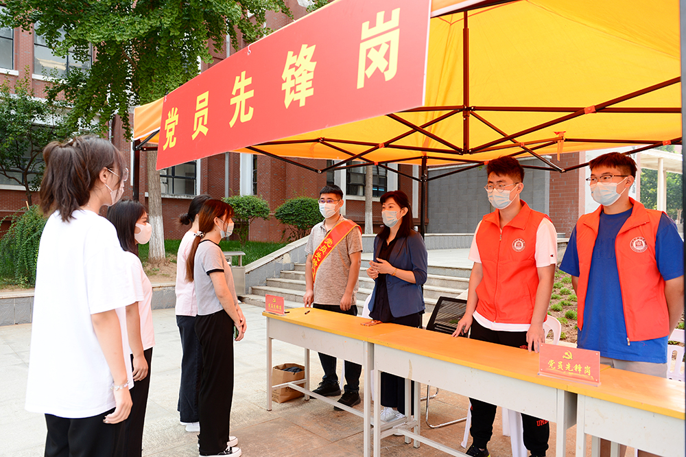 学校设立“党员先锋岗”,党员同志积极参加迎新相关服务,让党旗在迎新现场高高飘扬,党徽闪闪发光。开通绿色通道,为相关同学发放“爱心大礼包”。设置新生报到咨询处、失物招领处、志愿者服务处等,提供失物招领、医疗救护等服务。