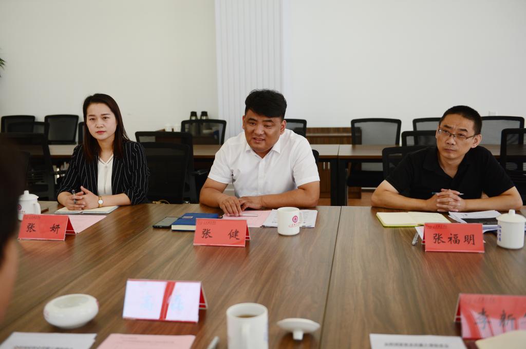 高磊对张健一行的到来表示欢迎,从学校的办学特色与优势、深化产教融合与校企合作等方面介绍了学校情况。他指出,近年来学校不断深化产教融合、全面开展校企合作,充分发挥校企双元育人作用,以“人文立身、技术报国”为校训,坚持开放办学,推进学校高质量发展,使人才培养质量不断提升。