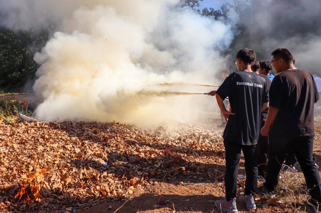 消防队员还讲解了常见灭火器的分类、适用火灾类型及注意事项,并用“提、拔、握、压”四字口诀介绍了灭火器的正确使用步骤和方法。各书院安排了100余名学生代表参与了灭火器使用演练活动。