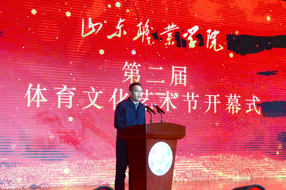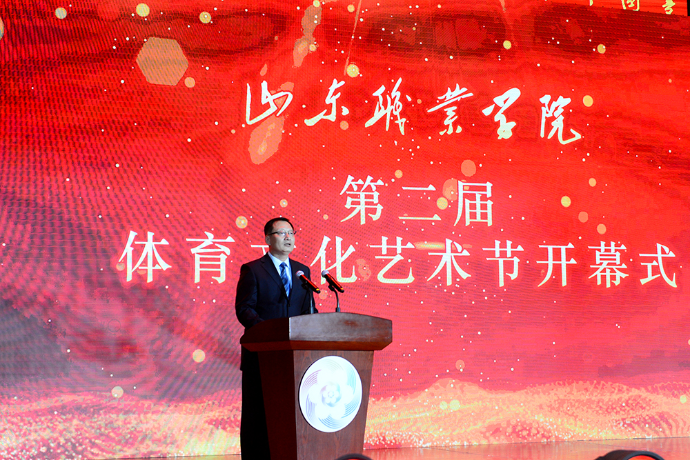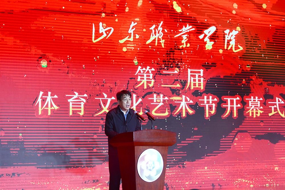 党委书记高磊代表学校致辞。他指出,学校自去年举办首届体育文化艺术节以来,带动形成了“周周有活动、月月有展演、人人都参与”的群众性体育文化艺术活动新常态,打响了“人文山职”品牌。期待各位来宾和广大师生员工借助体育文化艺术节平台,在交流互动中开辟校企合作新领域、新赛道,在团结奋斗中不断塑造发展新动能、新优势,共同将体育文化艺术节打造成学校与合作伙伴共同的精神家园、推进高质量发展的共赢平台、追寻诗意实现梦想的活力之源。