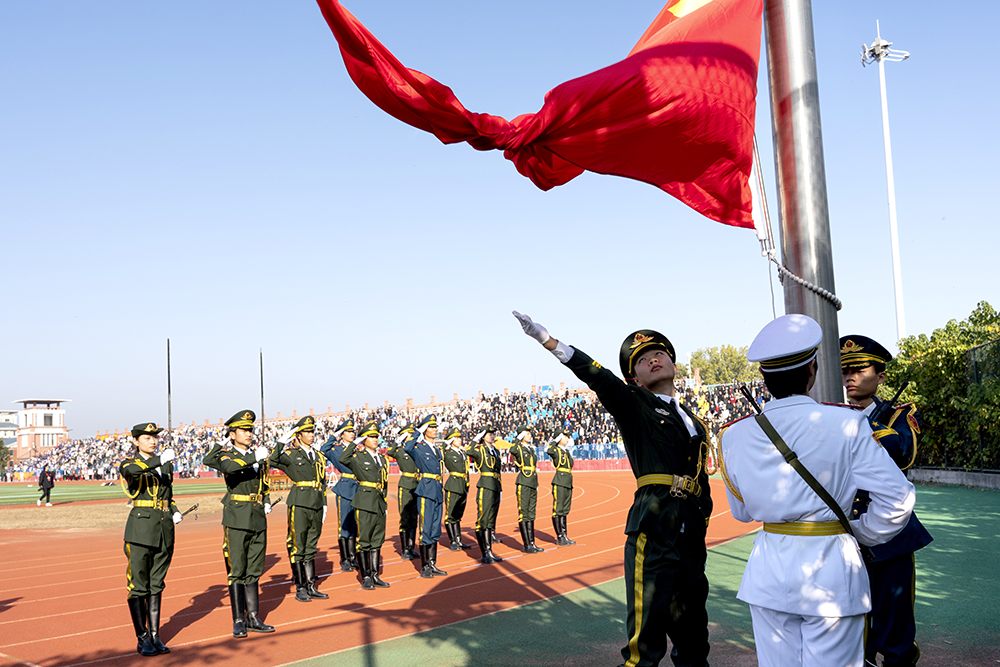 25日上午,在嘹亮的国歌声中,鲜艳的五星红旗冉冉升起,田径运动会正式拉开帷幕。