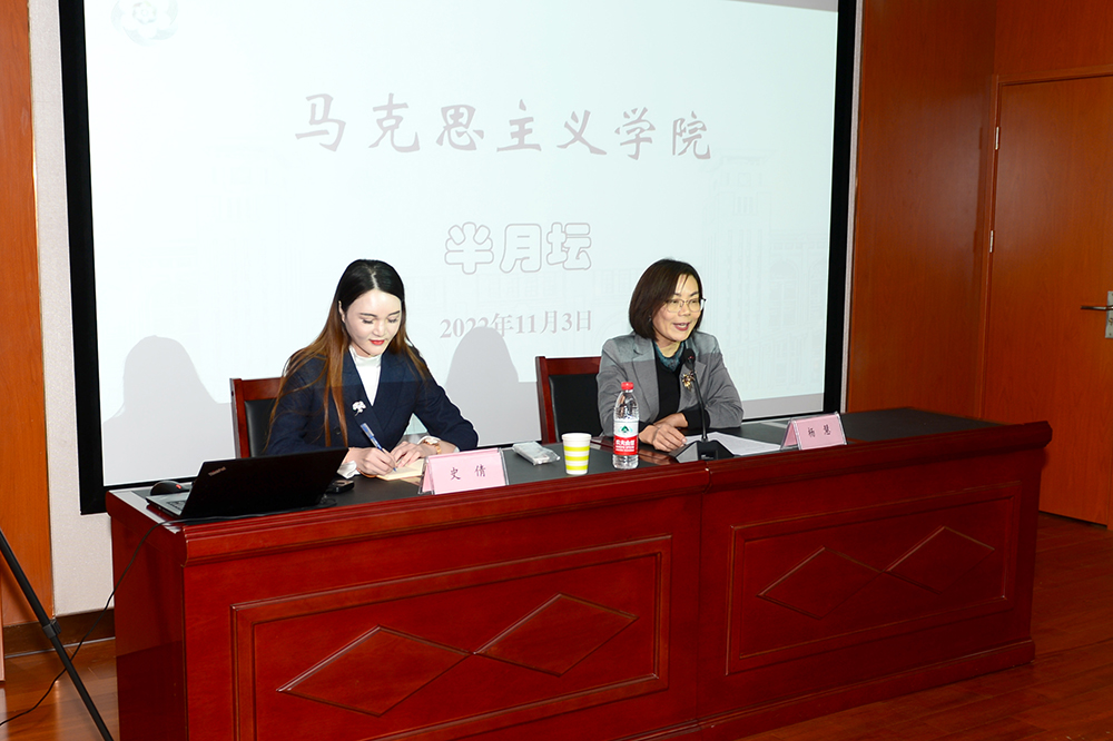 为加强思政课教学研究,提升思政课教学质量,进一步打造有高度有温度有深度的思政金课,11月3日下午,伟德在图书行政楼九楼会议室举办“半月坛”活动。论坛由马克思主义学院党总支书记兼院长杨慧主持。