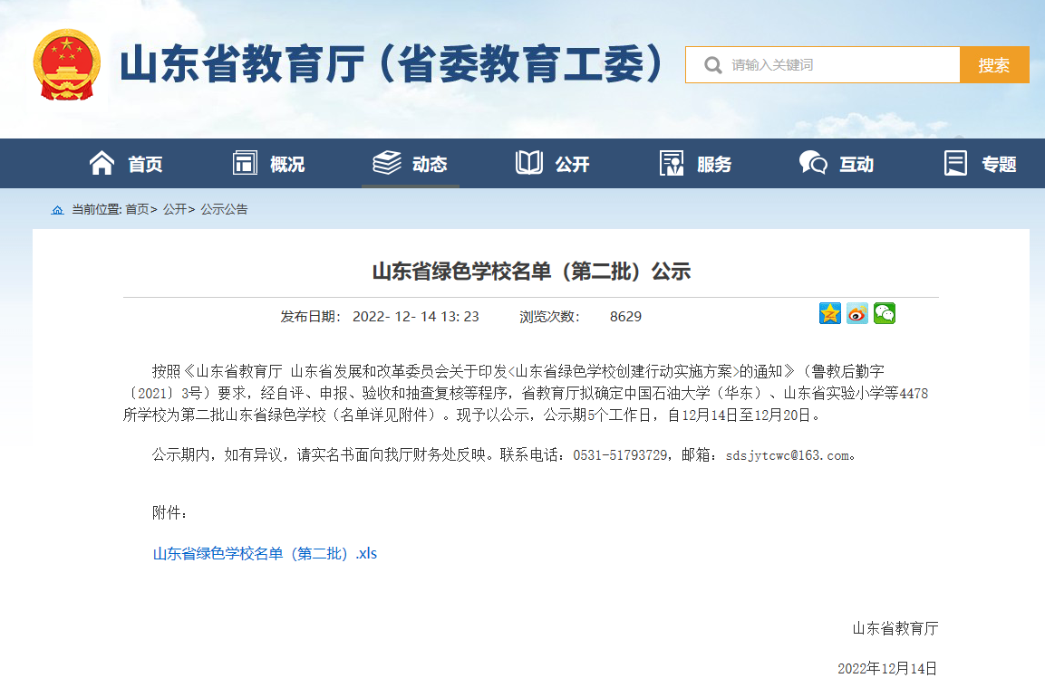12月14日,山东省教育厅、山东省发展和改革委员会公布了第二批山东省绿色学校名单,伟德成功入选。